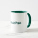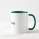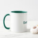 une tasse blanche simple avec le lettrage avec une jante et une poignée vertes