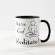 La tasse avec le chiffre dans la pose de méditation et l'expression "connaissent Dieu, méditent !"
