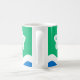 Tasse mit Design mit einer Fahne des historischen Landkreises von Cumberland, England, Großbritannien; grüne Flagge mit drei Parnassus-Blume und weißen und blauen Wellen