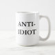 Fatigué de la stupidité ? Cette tasse indiquera au monde que vous vous sentez. Grand pour n'importe qui qui doit avoir affaire avec des idiots de façon régulière, cette tasse indique dans simple, noir et blanc, "Anti-Idiot".