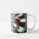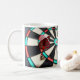 Farbenfrohe Dartboard und Dart. Design auf beiden Seiten der Tasse.