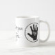 Montrez à vos collègues quelle main vous favorisez avec cette tasse blanche attirante montrant le slogan, le logo et le site Web de TotLH !