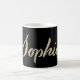 Une belle tasse de café noble dans le Handwriting liquid white gold Design pour Sophie. Parfait aussi comme cadeau ou cadeau pour l'anniversaire ou le jour du nom.