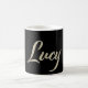 Une belle tasse de café noble dans le Handwriting liquid white gold Design pour Lucy. Parfait aussi comme cadeau ou cadeau pour l'anniversaire ou le jour du nom.