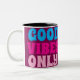 Tasse à café en céramique avec l'image d'un pied orné de bijoux élégants d'un côté et l'expression huppante "Bonnes vibes seulement" de l'autre côté.