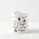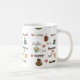 Une tasse de café blanc avec le mot "café" dans différentes langues et polices et images des tasses et des coeurs de café. Ceci ferait un cadeau parfait pour n'importe quel amant de café.