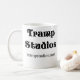 Une tasse de café durable comportant le logo de studios de bruit de pas célébrant, de notre propre manière, le caractère aimé créé par Charlie Chaplin.