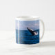 Tasse de café qui comporte une baleine de bosse dans un affichage de violation dans les eaux outre des surfers paradis, Australie. Tous les ans les milliers de bosses émigrent le nord d'Antarctique le long de la Côte Est australienne aux endroits de reproduction outre de QLD.