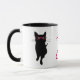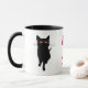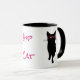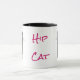 Tasse en céramique d'amusement avec des graphiques des verres roses de port d'un plot réflectorisé de hanche de chat noir, des deux côtés de la tasse. Le texte rose, sur l'avant de la tasse, lit le chat de hanche. Grande idée de cadeau pour tout fancier de chat ou hippie.