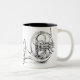 Tasse de café avec un cor de harmonie dessiné dans le style du pointilism.