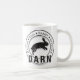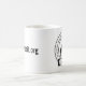 RACCOMMODEZ le logo et le domaine sur une tasse blanche.