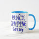 Tasse drôle pour le campeur. Le texte bleu de fantaisie lit, "TASSE DE FANTAISIE de CAMPING"