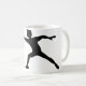 Le jeu du frisbee est beaucoup d'amusement. Jeune et vieux peut participer. Vous pouvez également faire le frisbee jetant competitivement. Cette conception présente un lanceur de frisbees dans l'action du lancement et est faite dans un style de silhouette. Cette conception de frisbee semble grande sur cette tasse. Perfectionnez pour vous-même ou comme cadeau