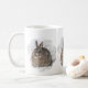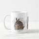Cette tasse comporte un petit lapin doux de lapin qui semble flotter sur un nuage. L'image est répétée à gauche, juste et centre.