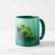 C'est une tasse avec un poisson vert dessiné dessus.