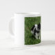 Chiot noir et blanc de Pomeranian jouant dans l'herbe