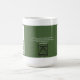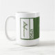 Raido est Rune des voyages. Cette tasse comporte une description peinte à la main d'aquarelle de la rune avec son nom dans des alphabets occidentaux et runiques contre un vert-foncé.