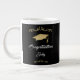 Gobelet en papier pour fête de remise de diplômes avec ornement élégant noir et or. Tasses de remise de diplômes personnalisées avec chapeau de diplômé, écriture tendance et ornements dorés sur fond noir. Félicitations et nom du diplômé - personnalisez avec votre nom.