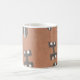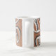 C'est une tasse avec une copie de tissu de boue de coquille de cauri là-dessus.