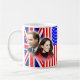 Prince William et princesse Catherine -- le duc et la duchesse de Cambridge -- visitera l'état de la Californie en juillet 2011. Cette tasse a les drapeaux britanniques et américains, avec 2 images des couples royaux -- on comportant le baiser royal célèbre de balcon de mariage. Au milieu il indique les VOLONTÉS d'AMOURS de l'AMÉRIQUE et le KATE