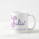 Lettre tirée par la main décorée avec votre propre début nommé avec J et tasse nommée de signification. Le joli capital J de coeur et de fleur a gribouillé la conception typographique comportant des coeurs et des fleurs et les mots Julia jeune, romantique avec le talent créatif dans le rose et le pourpre. Art et conception uniques de © de Sarah Trett. www.sarahtrett.com pour www.mylittleeden.com sur le zazzle