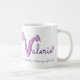 Lettre tirée par la main décorée avec votre propre début nommé avec la tasse de signification de V et de nom. Le joli capital V de coeur et de fleur a gribouillé la conception typographique comportant des coeurs et des fleurs et les mots Valerie fort et en bonne santé. Une beauté puissante courageuse dans le rose et le pourpre. Art et conception uniques de © de Sarah Trett. www.sarahtrett.com pour www.mylittleeden.com sur le zazzle
