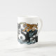 Grüner Ostasiatischer Drache gegen Tiger in der Landschaft mit Wasserfall, Felsen und Wasserwellen . Zwei spirituelle Kreaturen im klassischen Feng Shui, die Yin Yang repräsentieren. Illustration