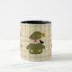 Diese Country Scarecrow-Tasse zeigt eine Maus, die eine Landschaft gezeichnet hat, mit einer kleinen Krähe auf der Schulter.