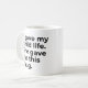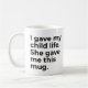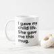 Hübscher Schlamm für Mama. Perfekt für den Muttertag. Zeigen Sie Mama, dass Sie interessiert, und lassen Sie sie lächeln mit dieser unglaublich witzig, nachdenklichen Tasse. Text lautet: "Ich habe meinem Kind das Leben gegeben. Sie gab mir diese Tasse."