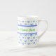 Eine hübsche, anpassbare Kaffee-Tasse mit Knochen-China, mit einem Muster von Bogen und Flecken in blau und grün auf weißem Hintergrund aus einem handbemalten Design von Judy Adamson!! Die Teekanne und die Pitcher werden ebenfalls koordiniert.