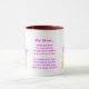 Eine Tasse des niedlichen Muttertages für eine kleine, rosa Prinzessin, die ihr verdiente Mama geben soll. Der Vers lautet: Mama sind großartig, wenn man dort ist, um seine Kleidung zu waschen und sich die Haare zu putzen. Aber besser als das, sind Mummy's kuddles, um mich wohlfühlen zu lassen, nach einem meiner Schläger! Copyright 2010 HightonRidley