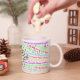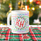 Gute Ferien!! Dies ist eine lustige Weihnachts-Texte-Tasse mit Ihren Initialen umgeben von Weihnachtsbeleuchtung. Feierlich, farbenfroh und lustig. Ideal für Kaffeepausen oder heißen Kakao. Kaufen Sie es für sich selbst oder als personalisiertes Geschenk. Kannst du die Songs der kurzen lyrischen Ausschnitte singen?