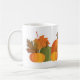 Diese Keramik Kaffee-Tasse wird in Weiß mit einem schönen Herbstkürbis und Blätter gedruckt. Passen Sie dieses Objekt an oder kaufen Sie, wie es ist. Bild