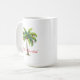 Die Tasse des Kaffees ist in Weiß mit einem Palmenaufdruck dargestellt. Im Text steht Feliz Navidad. Passen Sie diese Tasse an oder kaufen Sie, wie es ist.