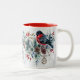 Les oiseaux sur le pin s'embranche avec des baies et des cônes de pin sur un fond en bois clair. Vitré à l'intérieur en rouge. Donnez ce cadeau d'amusement à un ami, ou ajoutez à votre collection de vacances. Construction, micro-onde et coffre-fort forts et en céramique de lave-vaisselle.