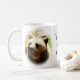 Tasse blanche classique avec des photos d'un concerner l'avant et le dos et un endroit pour votre propre texte au milieu. Personnalisable.