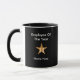 Employé chic des tasses de café de reconnaissance d'année comprenant une étoile colorée par or et des modèles des textes que vous pouvez remplacer par le nom. Conçu comme une récompense pour de bons contrats de bureau ou excellence dans la productivité que vous pouvez donner à vos employés d'une manière peu coûteuse. La conception est montrée des deux côtés de la tasse de café pour le droit ou les buveurs gauchers.
