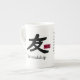 White espresso mug featuring an image, on both sides, of the Chinese character for friendship and this quote from Aristote : "What is a friend ? A single soul dwelling in two bodies." Lac matching candy jar, flask, mug, lanceur, paper plate, shot glass, teapot and coasters. See the entire Enlightenment Mug collection in the FOOD/BEV | Dishes section.