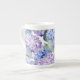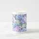Cet os Chine mug est montré avec une belle impression florale hydrangée multicolore. Customisez cet objet ou achetez tel quel. Image sous licence