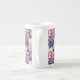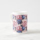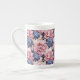 Cet os Chine mug est montré avec un joli imprimé floral bleu et rose de pivoine. Customisez cet objet ou achetez tel quel. Impression sous licence