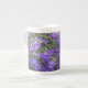 Profitez d'une tasse de café, de thé ou de chocolat chaud dans cette jolie tasse en porcelaine osseuse qui présente une photo enveloppante de petites fleurs violettes de Rhododendron. Un joli design floral !