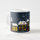 Tasse enorme de soupe à scène d'hiver. Perfectionnez pour se blottir par le feu et pour se verser de la soupe chaude.
