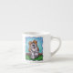 Animal Parade Cute St Bernard Dog Espresso créé par Imagine That! Le design met en valeur notre joli personnage de chien blanc et bronzé debout dans une cour herbeuse avec une clôture en brique rouge, un ciel bleu texturé et une bordure violette ondulée et ludique peinte par notre talentueux artiste de livres pour enfants, Traci Van Wagoner. Le marrant chiot est en position de jeu avec une patte levée. Cet art amusant pour animaux de compagnie est parfait pour les amoureux de les chiens de St. Bernard et les amateurs d'art animal humoristique de tous âges. Sur beaucoup de nos produits de levrette sainte Bernard, vous trouverez ce mignon chiot qui va et vient avec la tête de chien joueuse de Saint Bernard d'un côté et la queue de chien drôle de l'autre. Rejoignez la Parade des animaux et souvenez-vous de quelqu'un que vous aimez avec un cadeau de notre mignon chien St. Bernard. Malheur !