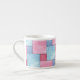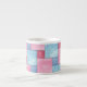 Une jolie tasse expresso, avec patchwork de motif denim rose et bleu, d'une aquarelle peinte à la main par Judy Adamson.