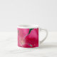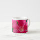 Espresso dans le jardin - la photo originale de MaeFlowers sur cette Espresso Cup aux couleurs vives est un closep de fleurs roses contre des feuilles verts, avec une touche de ciel bleu clair qui se projette à travers. Sur la photo, les pétales de fleurs sont largement ouverts. Le centre de la fleur est un ivoire jaune doux qui se fond en rose à ses bords extérieurs rouillés.
