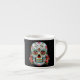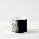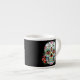 Tasse expresso en céramique blanche avec l'image, de part et d'autre, d'un Jour du crâne mort décoré de fleurs et de vignes roses, de roses rouges et d'une croix avec quatre gouttes de sang sur le noir. Le Jour des Morts, ou Fête de toutes les âmes, est célébré le 2 novembre dans différents pays européens et latino-américains. Au Mexique, la période des festivités de la Fête de l'Âme est célébrée pendant plusieurs jours, y compris la Toussaint le 1er novembre. Voir la tasse correspondante, bonbon, plaque en papier, carreaux en céramique carré et dessous de verre. Voir toute la collection Mexico Mug dans la section HOME.