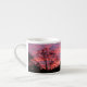 La beauté du paysage pittoresque des îles est capturée dans cette photo d'un lever de soleil matinal. Alors que le soleil se lève de l'est, la nature reflète des couleurs vives, roses et rouges, à travers une multitude de nuages agités contre un ciel bleu. Le soleil, toujours en dessous de la limite de la forêt, saisit le contraste saisissant de l'horizon sombre du bord de la forêt par rapport à un ciel étonnamment coloré. Un arbre à feuilles caduques, avec très peu de feuilles sur les branches, crée une silhouette de plumes.