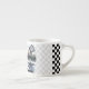 Tasse expresso en porcelaine blanche avec une Alice vintage au pays des merveilles image d'Alice à la fête du thé de Mad Hatter avec le lièvre de mars, et Dormouse sur un arrière - plan en damier noir et gris. Voir la bocale à bonbons, le lanceur, la plaque en papier, la théière et les dessous de verre correspondants. Voir l'ensemble de la collection Wonderland Mug dans FOOD/BEV | Section Plats.
