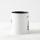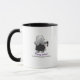 Tasse blanche avec la jante noire comportant nos nouveaux débuts, logos heureux de fins !