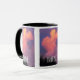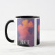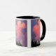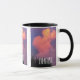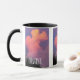 Ce Mug inspiré par ZoeSPEAK présente une photo originale de nuages dans le ciel oriental reflétant le coucher du soleil à l'ouest, sur le golfe du Mexique. Le ciel tropical du soir est baigné d'une chaude lumière rose au-dessus de la silhouette sombre des palmiers. Le remplissage de la plupart de la photo est un nuage dans une forme très intéressante, ressemblant presque à un animal de jouet...utilisez votre imagination...les couleurs roses douces des nuages abrupts près du fond de la photo s'intensifient lorsque le soleil frappe la forme épaisse et éclatante du nuage principal qui monte dans le ciel. La forme de bouffée en haut du nuage a des reflets jaunes. Près du fond de la tasse se trouve le mot IMAGINE, en minces lettres majuscules blanches. Le design est répété autour de la tasse.